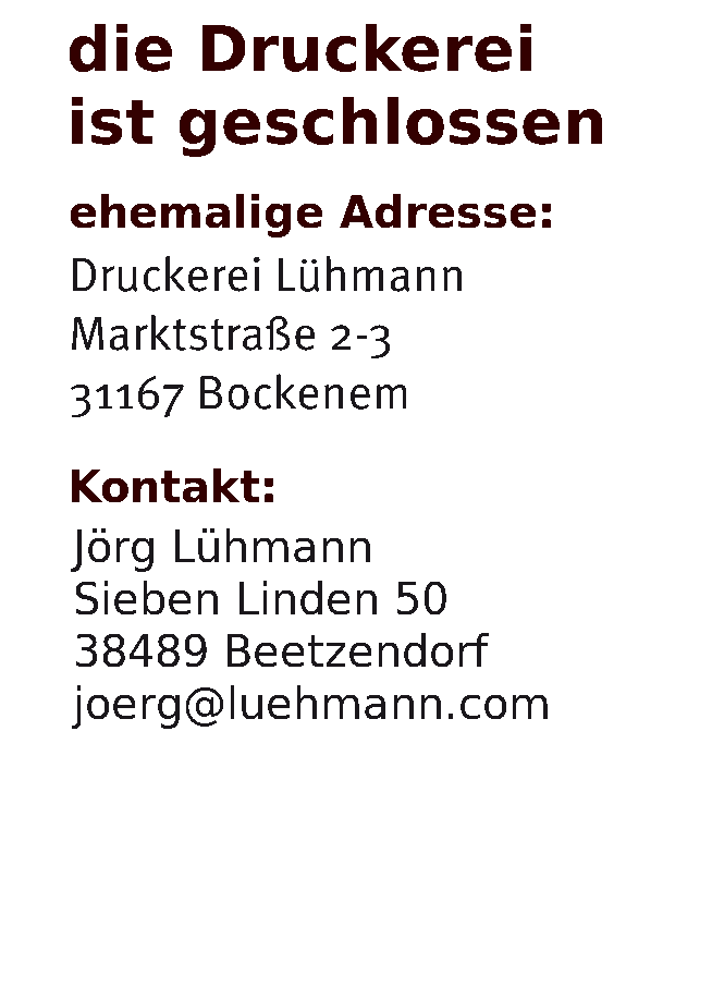 Inhaber und verantwortlich für diese Seite: Jörg Lühmann, Sieben Linden 50, 38489 Beetzendorf